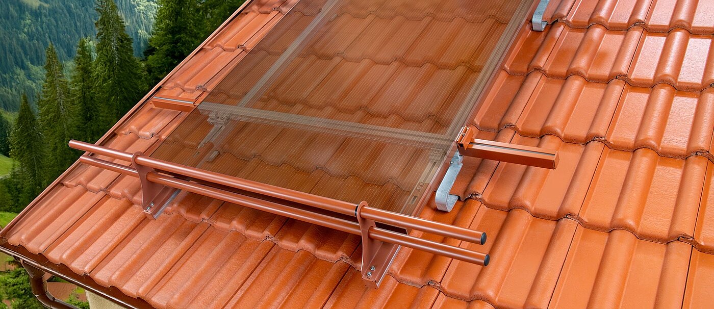 Der SL Rack Schneefang wird direkt im RAIL montiert und ermöglicht so eine maximale Ausnutzung der Modulfläche. Das Set besteht aus langlebigen, pulverbeschichteten Aluminiumrohren und robusten Anschlusswinkeln aus Edelstahl. Mit einer Standardgröße von 300 x 400 x 4750 mm ist der Schneefang großflächig einsetzbar und kann durch einfaches Kürzen der Rohre flexibel an jede Dachsituation angepasst werden. Die Montage erfolgt zeitsparend ohne zusätzliche Halterungen durch die direkte Verbindung mit dem Montagesystem. Farblich passt sich der Schneefang in Ziegelrot (RAL 8004) oder Anthrazit (RAL 7016) harmonisch dem Dach an - weitere Farben sind auf Kundenwunsch möglich. Ideal für Anlagen, bei denen Optik, Effizienz und Sicherheit gleichermaßen gefragt sind.